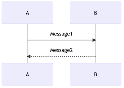 In this example, we define two participants, A and B, and show two messages being sent between them.